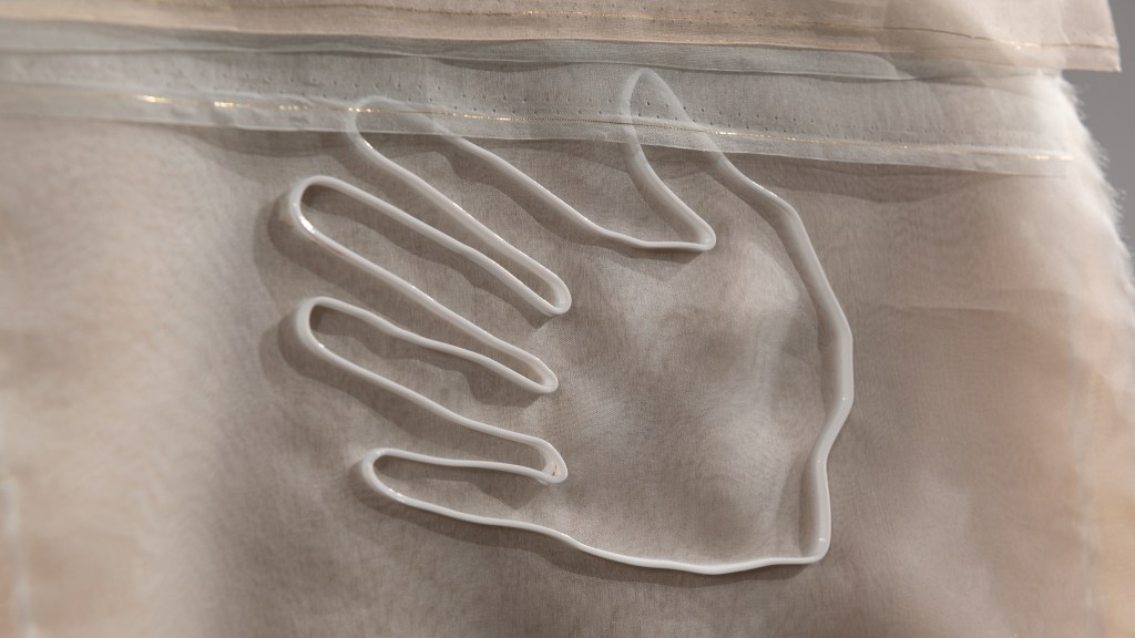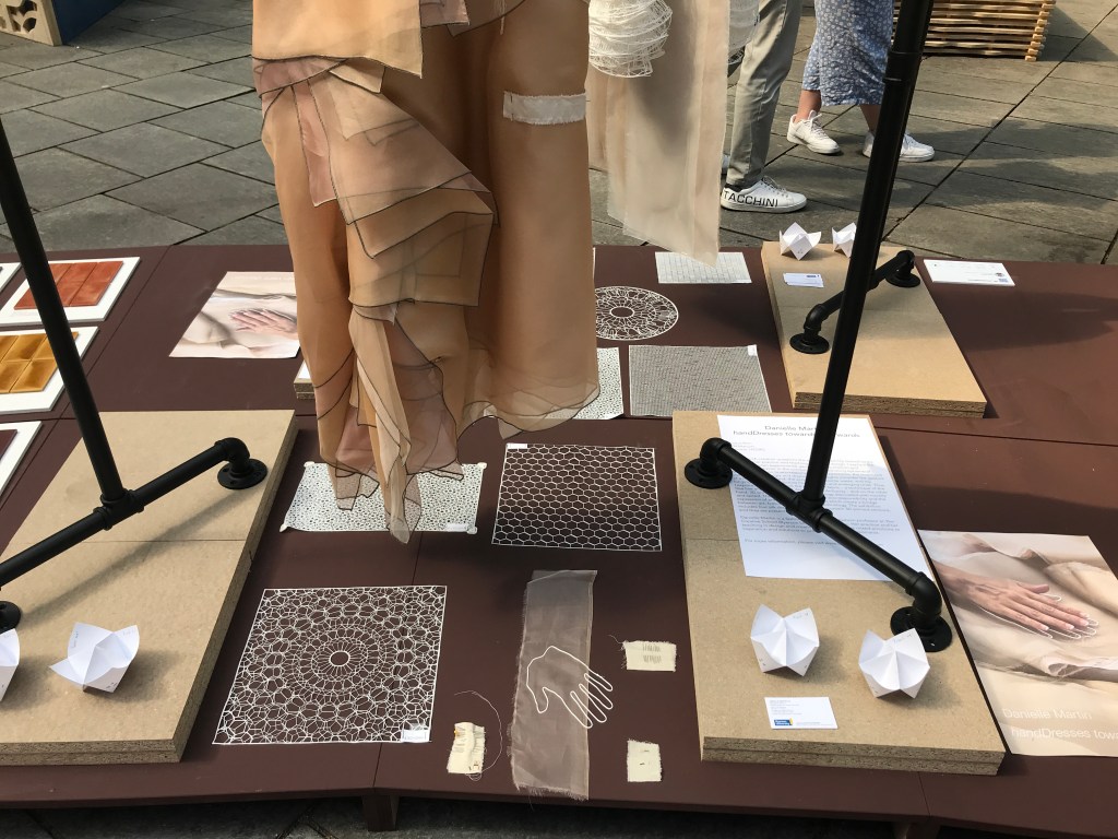L’émotion est le leitmotiv de cette robe coupé sans gaspillage textile. Dans la forme d’une main, la robe enveloppe poétiquement le corps tout en tentant d’être éco-responsable. Fascinée par le travail fait-main, j’ai créé une robe en devenir à un rythme que seule la réflexion peut faire ralentir.